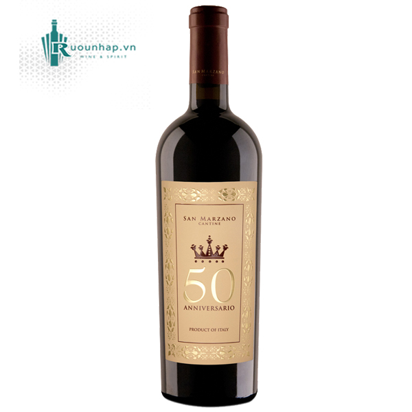 Rượu Vang 50 Anniversario được sản xuất từ sự phối trộn tinh tế của hai giống nho đỏ bản địa trứ danh vùng Puglia là Primitivo và Negroamaro, được tuyển chọn từ những vườn nho cổ thụ lâu năm nhất của nhà San Marzano.